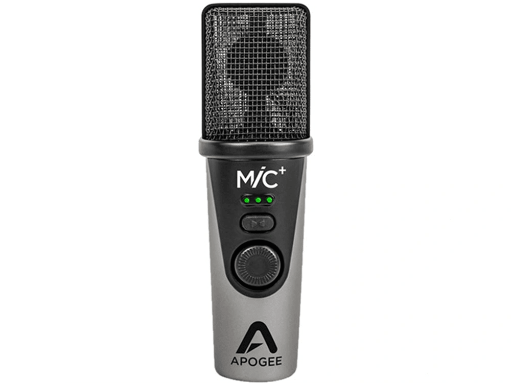 The Apogee MiC Plus is a USB cardioid condenser microphone designed to provide easy setup and high-resolution audio for singers, podcasters, video bloggers, and musicians in home recording rooms, project studios, and portable setups. Its cardioid polar pattern attenuates signal from behind the microphone to minimise room reflections in the recording. The internal A/D convertor supports resolutions up to 24-bit/96 kHz.