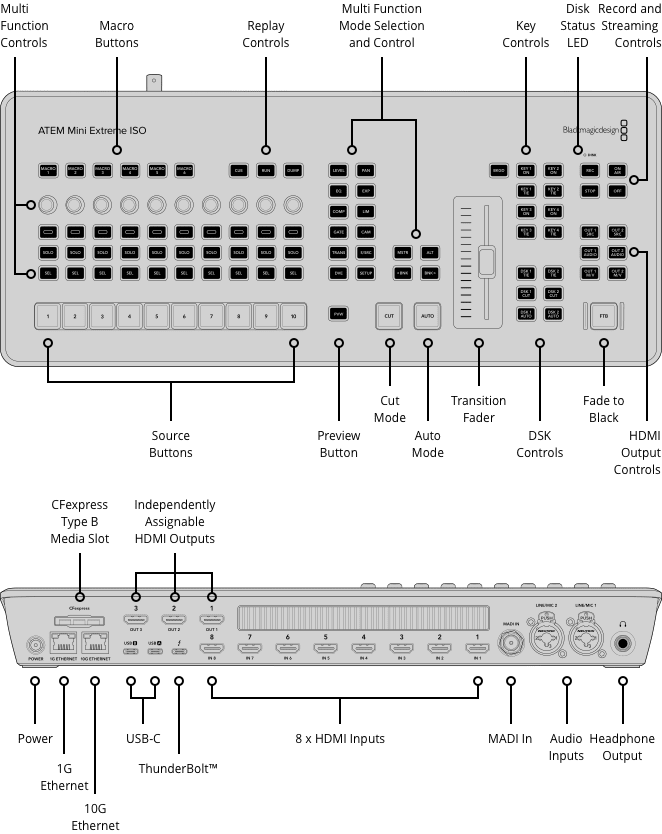 The ATEM Mini Extreme ISO G2 is the most powerful compact switcher in the ATEM Mini range, designed for professional live production, streaming, and fast post-production. Built by Blackmagic Design, it combines an advanced hardware control panel with high-end connectivity normally found in broadcast-grade systems.