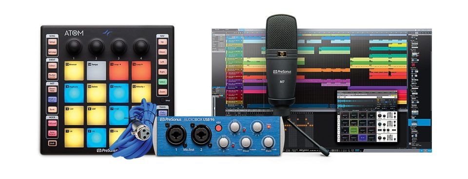 Get started making beats and producing tracks today with this complete, all-in-one music production pack. The ATOM Producer Lab provides everything you need to create music, record vocals, and more right out of the box. Capture a beat whenever creativity strikes with PreSonus®’ ATOM. Record vocals and create your own sample library with the AudioBox USB® 96 audio interface and the M7 large-diaphragm condenser microphone. Record, produce, and mix it all with Studio One® Artist, Ableton® Live Lite, and a bonus library of loops and single-shots curated by the hitmakers at MVP Loops. Tight integration with both Studio One® and Ableton® Live mean that you can take your focus off the screen and onto your performance—so you stay inspired without missing a beat.