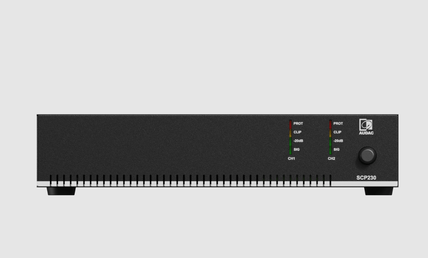 The AUDAC SCP230 is a versatile and compact dual-channel power amplifier, engineered for professional audio installations where reliability, efficiency, and performance are essential. Despite its half 19” rack space design, it delivers impressive output power and flexible configuration options.