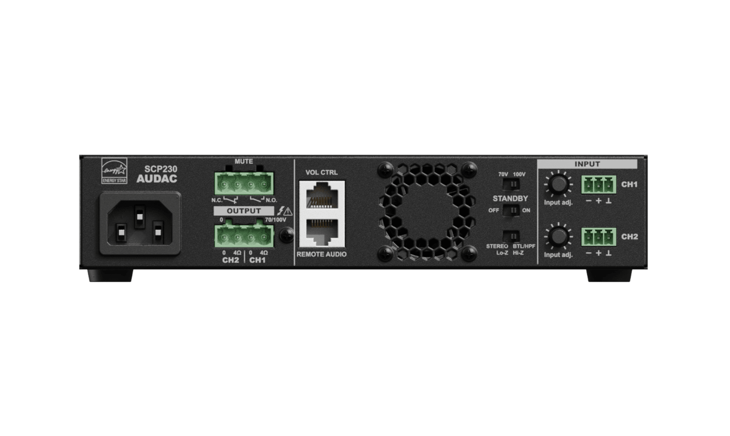 With 2 × 300 W at 4 Ω or 600 W in 70/100 V mode, the SCP230 is perfect for driving both low-impedance loudspeakers and constant voltage speaker lines, making it an excellent choice for commercial, educational, hospitality, and corporate sound systems.