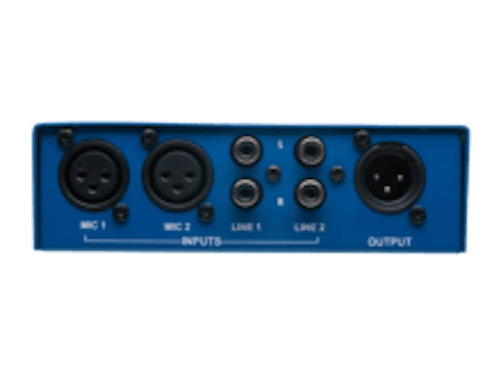 The MIXED UP is a passive 4 channel mixer which features 2 balanced XLR microphone inputs and 2 dual RCA line inputs and a single balanced XLR output.