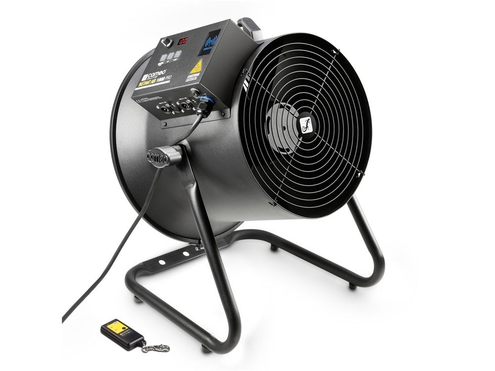 The Instant Air 1000 Pro from the Cameo Instant series is a highly efficient wind machine for use in theatres, on catwalks, in films, clubs, discos, theme parks and live concerts. Thanks to a maximum air flow of 56 m³ per minute and a precise fan strength adjustable in one percent increments, it produces numerous effects from light breeze up to forceful gusts of wind. The output angle can be infinitely adjusted up to 180°, thus allowing a precise jet of air or a wide diffusion with a range of up to 21 m.
