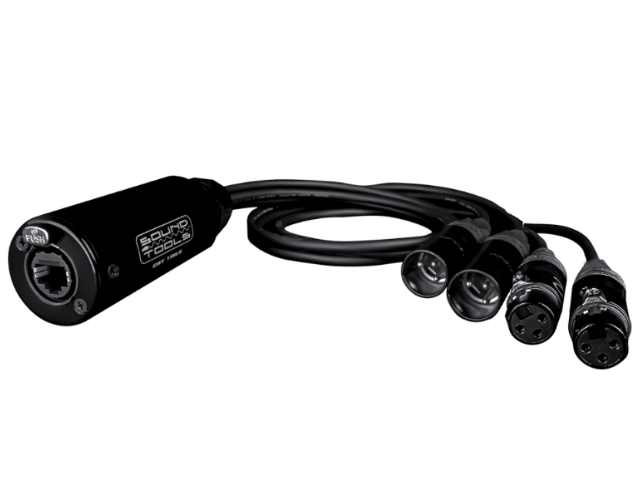 Simplify your smaller jobs with SoundTools modular stage snake units. SoundTools CAT Tails Send-Receive is an easy-to-use Analog-Audio-Over-Cat breakout that eliminates the need for several bulky cables. Combine with our CAT Box send/receive units to both send and receive through the same shielded ethernet cable.-Perfect for lightweight, portable set ups for DJs, weddings, or recordings.-Four 24” AES3 grade cables plug directly into analog or digital consoles.-Compatible with 48-volt phantom power when using shielded Cat5e or better cable.-Four channels available in 2 female XLR, 2 male XLR or 2 male XLR, 2 female XLR configurations with clearly laser-etched numbers to keep track of channels.