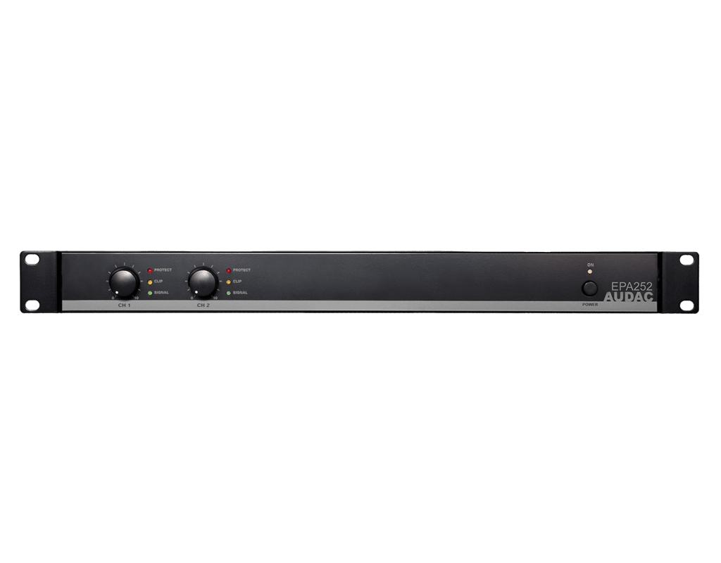 This energy efficient stereo amplifier will automatically switch to a standby mode when no audio signals are detected (less than 1Watt power consumption in standby mode). Their weight and compact size makes these single rack space amplifiers ideal for both fixed and mobile installations. Their use of Class-D technology ensures excellent efficiency as well as outstanding sound quality. Thanks to the complete passively cooled entity only a minimal of maintenance is needed, while ensuring maximum reliability. Various specific functions and advanced circuitry guarantees an optimal protection against DC malfunctioning, short circuit, overheating and overload. Signal input connections are integrated with balanced XLR connectors, and signal link through is possible using the XLR output connectors. Outputs are connected using terminal block connectors.