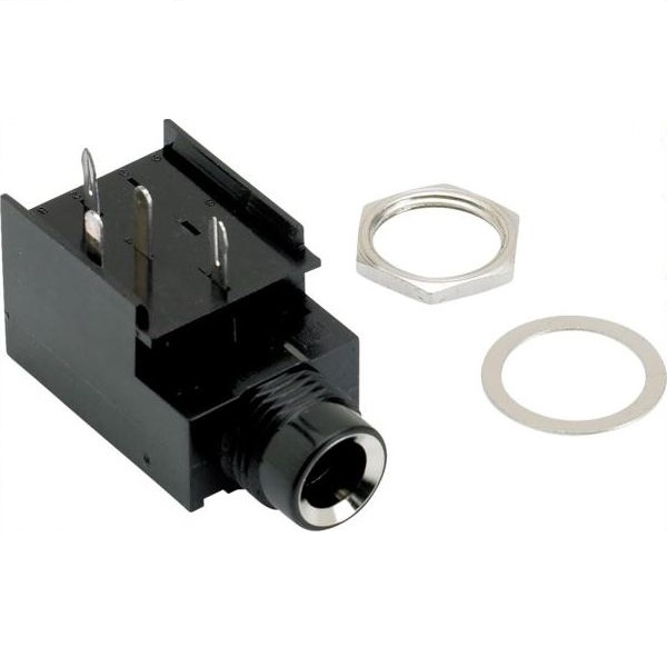 Fender Style replacement ¼” Mono input jack that has 4 PCB mount terminals.