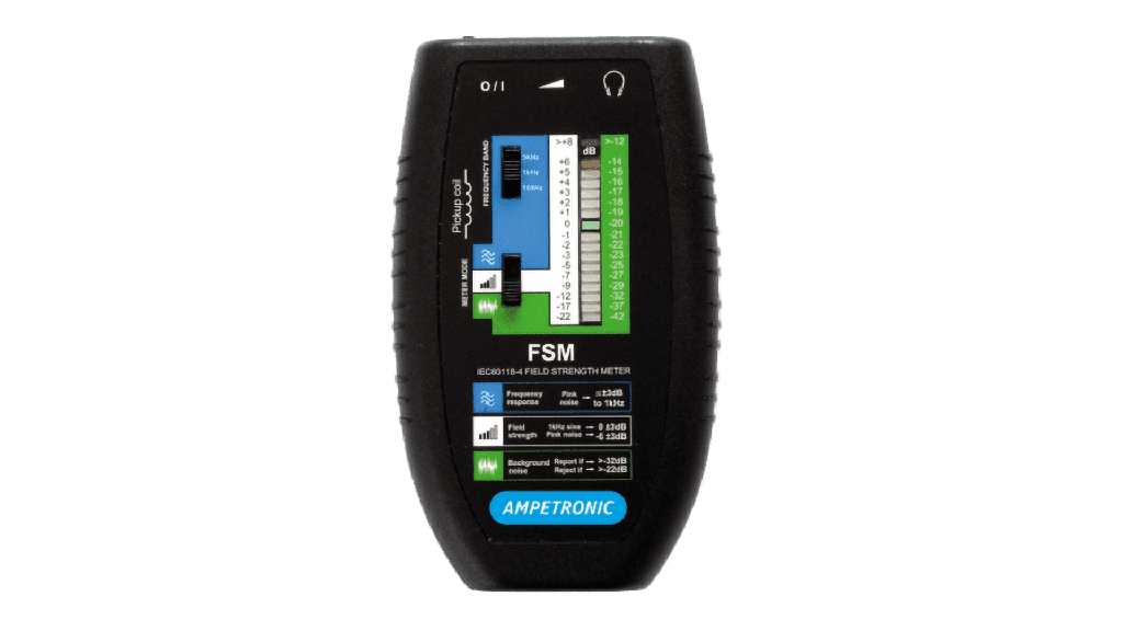 The meter is supplied in a soft case and with full operating instructions including a guide to commissioning. The Ampetronic FSM can be used to monitor, set up or commission any induction loop system regardless of the manufacturer or type.