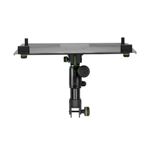 The practical laptop tray with adjustable holding pins extends the functionality of your Gravity® DJ desk (FT 01) and ensures the best view of your laptop.