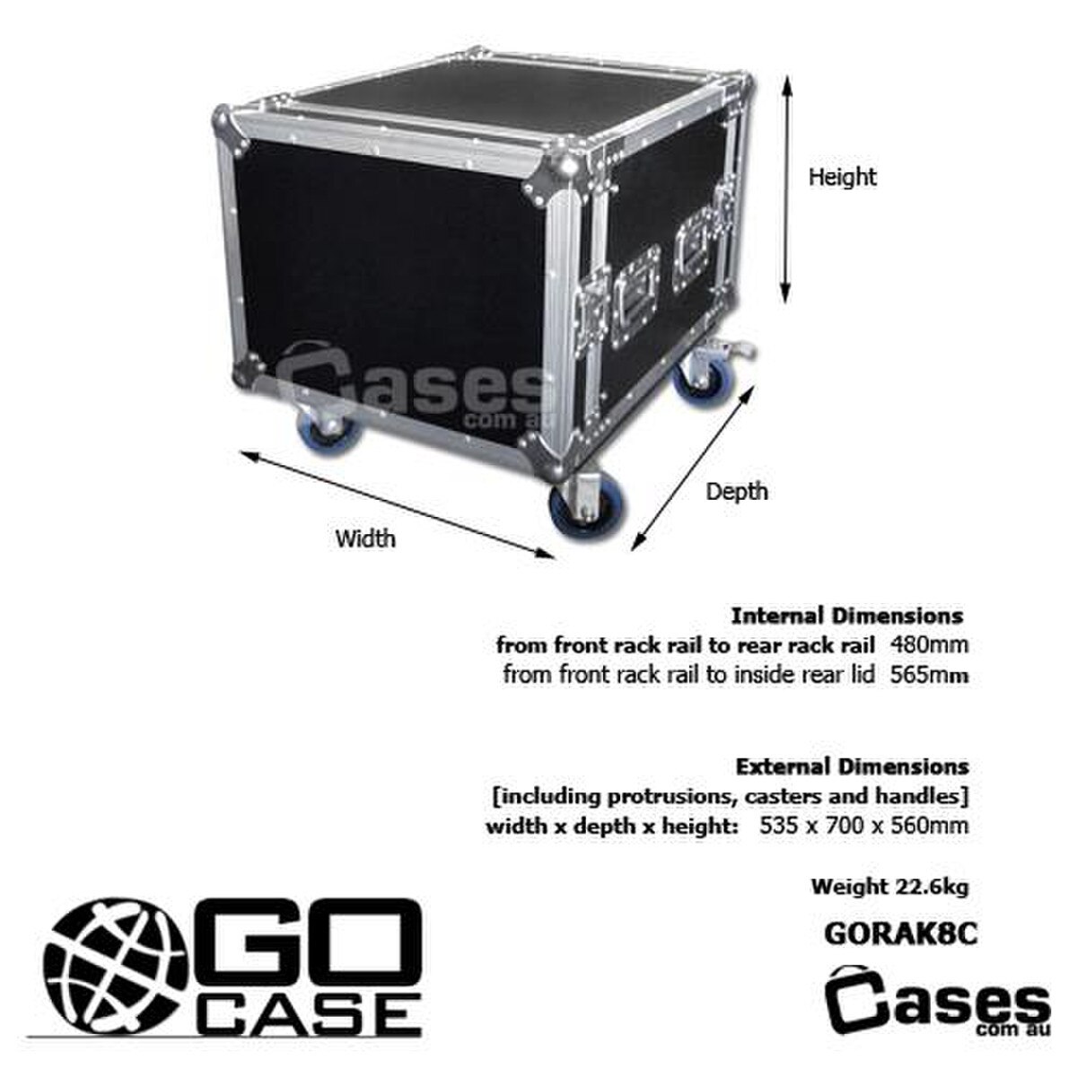 Built for touring, installs, and serious AV work, the GORAK8C 8U Rack Flight Case offers maximum protection and mobility for your valuable 19” rack equipment. With front and rear removable lids and heavy-duty castors, this case is designed to make transport, setup, and servicing fast and stress-free.