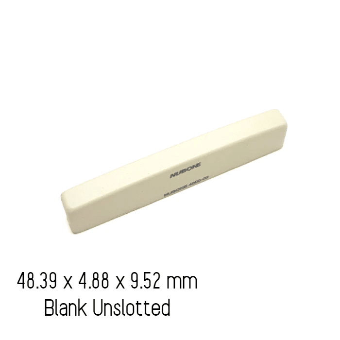 NuBoneis a derivative of Graph Tech’s highly resonant TUSQ material, manufactured to very close tolerances under high heat and pressure. We use specific ratios that contribute to NuBone’s hardness, workability, appearance, and most importantly, guitar performance. Odorless when sanded, it is strong, outlasting and outperforming plastic. NuBone is the answer!