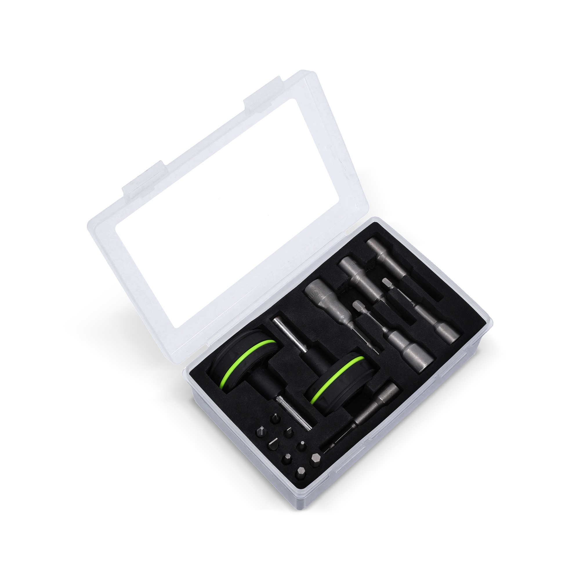 The knob tools feature a non-slip surface and integrated magnetic bit holder, allowing sockets and bits to stay securely in place while you work. The set includes duplicate sockets for 8 mm, 10 mm, and 13 mm sizes, allowing you to counter-hold nuts and bolts when required.