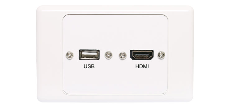 HDMI and USB type A wall plate. HDMI high speed with Ethernet connection. Rear is fitted with 150mm fly leads with HDMI and USB type A socket for easy connection. Altronics dual cover type wallplate.