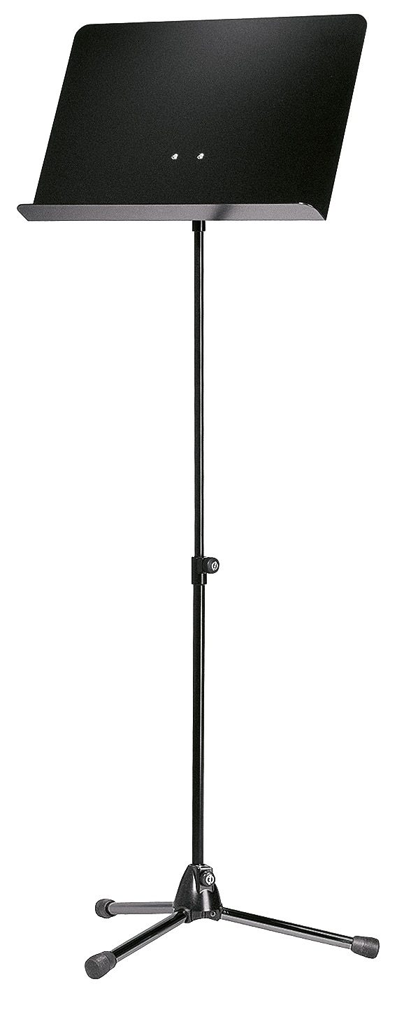These professional-quality orchestra music stands are rock-steady thanks to the die-cast base and folding legs. A prismatic »V-block« connector attaches the removable desk to the stand. Desks are available in a variety of premium woods and other materials.