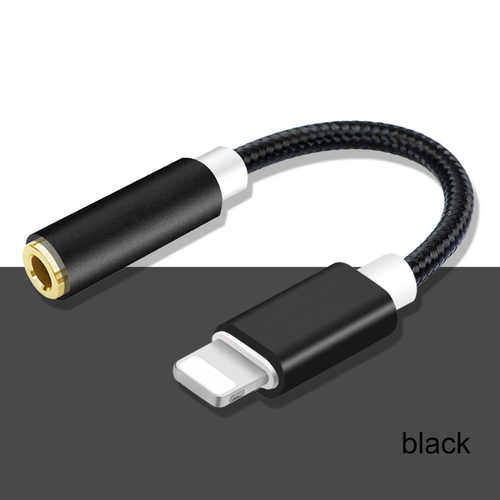 Product Name: For iPhone7 to 3.5mm audio cable Material: Alloy shell,Nylon Wire Interface: For ios,3.5mm device Function: Audio Converter Specification: 12cm OD: 3.5mm Weight: 11g Color: Black Package: 1 * 3.5mm audio cable