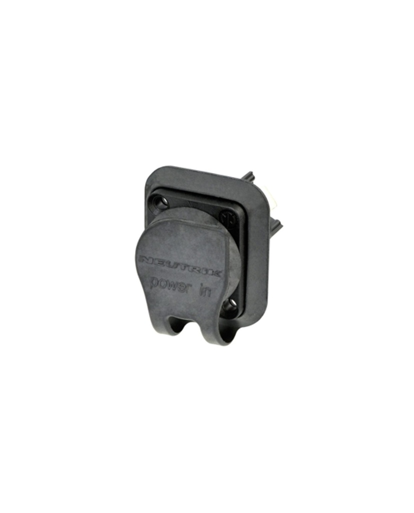 The rubber sealing cover protects the powerCON TRUE1 male chassis connector NAC3MPX from dust and water according to protection class IP65.