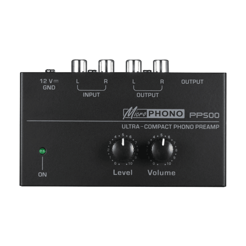 Ultra compact phono preamplifier with metal housing, portable and durable.