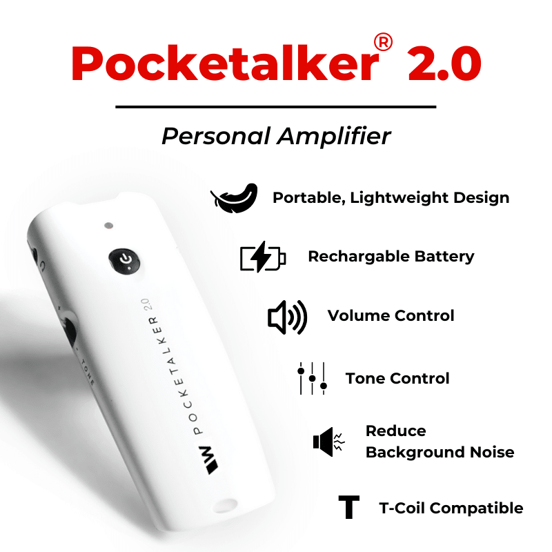 The Pocketalker® 2.0 is a versatile, high quality assistive listening device designed to improve communications in difficult listening situations. The Pocketalker delivers clear, distinct sound, while its large, manageable controls provide for easy operation.