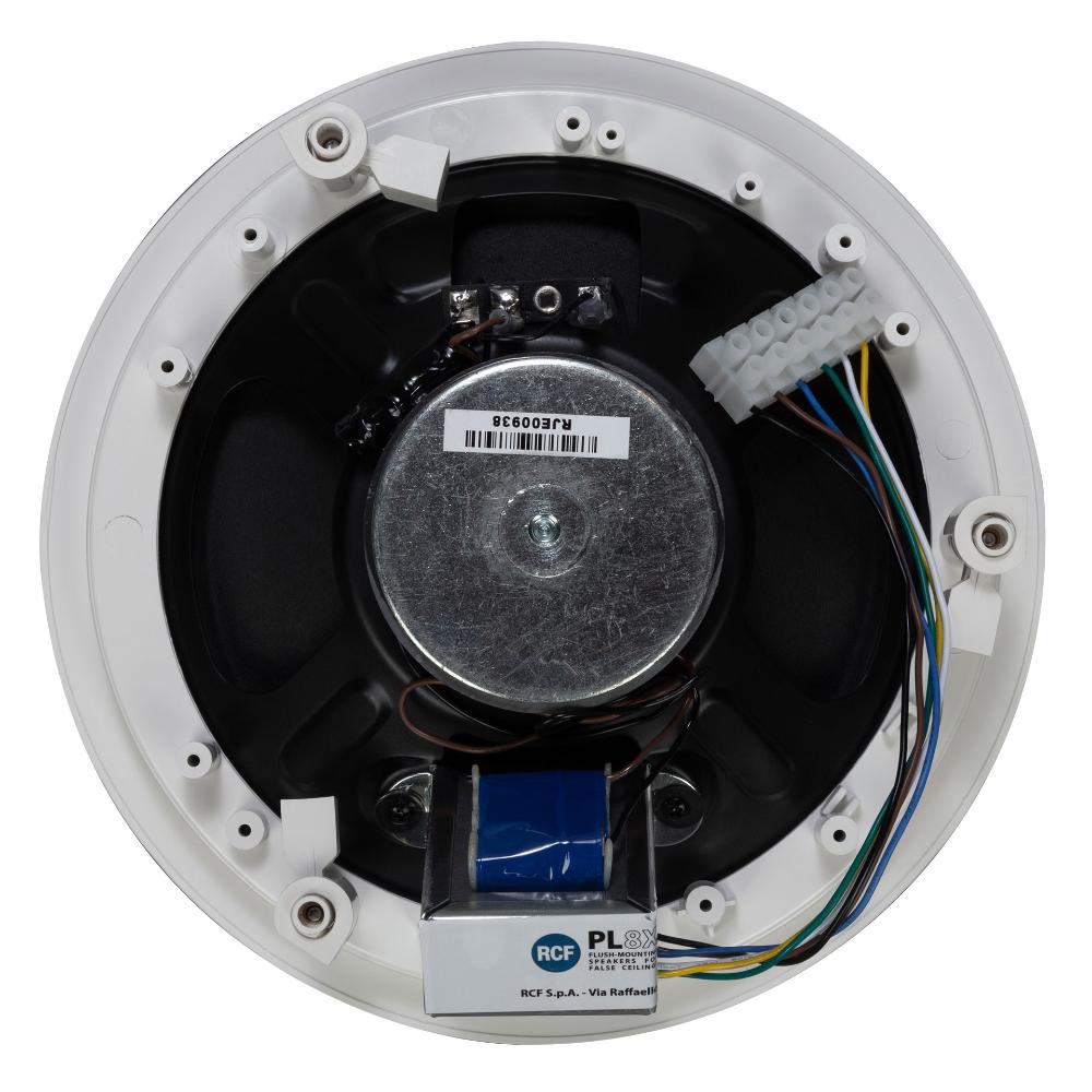 PL 8X is a ceiling speakers featuring elegant and innovative design that can be flush-mounted in false ceilings or panels. Incorporating a 8” coaxial woofer with a 1” tweeter placed on a bridge support. PL 8X is equipped with a line transformer that enables direct connection to constant voltage systems at 70 V or 100 V. The multiple sockets on the transformer make possible to select the output power from among several values. Installation is quick and easy thanks to a special three-hook system that avoids the need for using screws and pallet or other attachment elements.