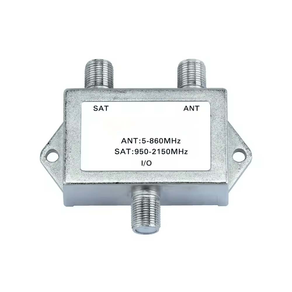 Satellite Terrestrial Diplexer to combine Satellite Signal and Terrestrial (UHF) Signal in one cable. Requires one Diplexer to be used at each end of the cable or if using with a Multi-Switch, just connect one of these Diplexers at the Receiver/TV end of the cable. This Satellite Terrestrial Diplexer does not have a weatherproof cover, so it must be protected and mounted out of the weather.