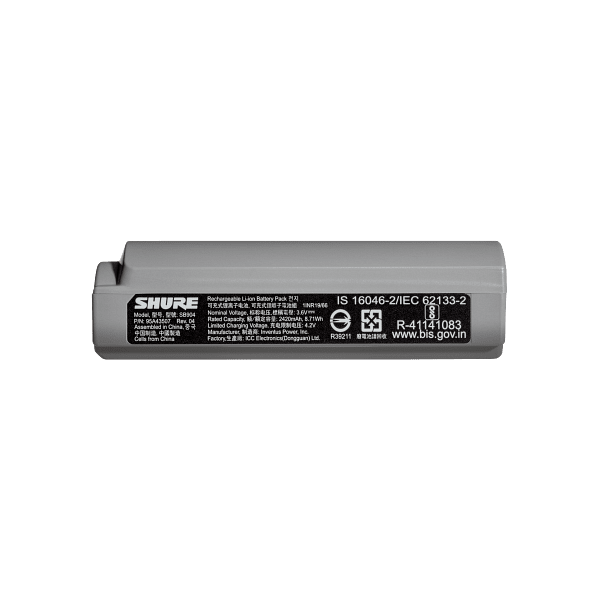 New SB904 lithium-ion rechargeable battery makes powering GLX-D+ wireless systems easy. With up to 12 hours of runtime and accurate metering in hours / minutes, the new GLXD+ batteries can be charged directly on the receiver, via optional sled charger, or via USB-C connector on the handheld microphone or bodypack (sold separately). A quick charge feature allows for 1.5 hours of usage from a 15 minute charge.