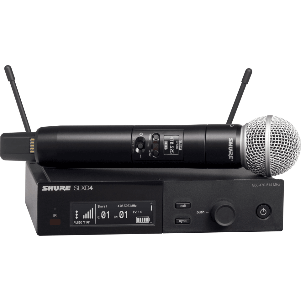 The Shure SLXD24-SM58 Digital Wireless Handheld System with SM58 offers presenters and performers a wireless handheld microphone system that’s dependable, easy to set up, and features crystal-clear, digital sound quality. Built around a rugged, single-channel, half-rack receiver with removable antennas, the system is ideally suited for portable rigs or long-term installations in small- to medium-sized venues, event spaces, conference rooms, houses-of-worship, and education facilities.