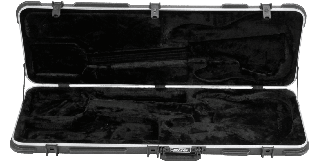Re-designed exterior with larger bumper protected corners and contoured stacking points for added convenience. The case also Includes SKB’s patented TSA recognized and accepted trigger release latching system and a comfortable rubber over-molded handle. This versatile Bass Guitar case is designed to fit most right handed “P” and Jazz style instruments. A Thirty year standard in universal fit of electric cases. With a fitted interior and full neck support and Deluxe Plush protection on all sides.