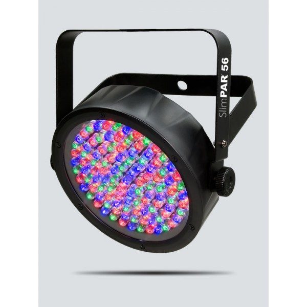 SlimPAR 56 is an LED wash light in a sleek white or black housing. Powered by 108 red, green and blue LEDs, it blends into any décor with ease. Customize light shows in 3- or 7-channel DMX mode. FEATURES LED Par designed for any application in need of a compact wash light Low-profile fixture fits most places other lights cannot Compatible with the Satellite™ battery-operated system Ideal for quiet applications due to silent operation and no moving parts Convenient access to RGB color mixing and static colors without DMX Trigger eye-catching effects with built-in automated programs via Master/Slave or DMX mode Increase standalone versatility with multiple user-configurable settings Achieve flicker-free video operation with high-frequency LED dimming Save time running cables and extension cords by power linking multiple units Easily transports in the optional CHS-SP4 VIP Gear Bag Available with a black or white housing Compact design easily fits inside sticks of TRUSST® SPECIFICATIONS DMX Channels: 3 or 7 DMX Connectors: 3-pin XLR Light Source: 108 LEDs (36 red, 36 green, 36 blue) 0.25 W (20 mA), 100,000 hours life expectancy PWM Frequency: 1,200 Hz Beam Angle: 14° Field Angle: 23° Illuminance: 876 lux @ 2 m Power Linking: 50 units @ 120 V; 100 units @ 230 V Input Voltage: 100 to 240 VAC, 50/60 Hz (auto-ranging) Power and Current: 24 W, 0.2 A @ 120 V, 60 Hz 27 W, 0.1 A @ 230 V, 50 Hz Weight: 2.7 lb (1.2 kg) Size: 9.5 x 8.8 x 2.2 in (241 x 224 x 56 mm) Approvals: CE, MET