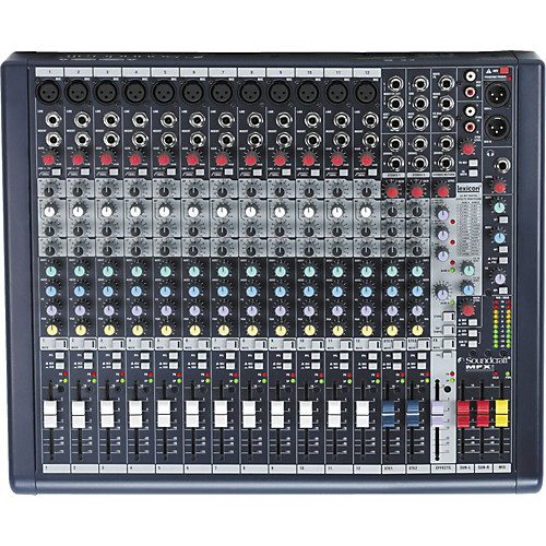 This is An EX Demo Product Marks and scratches may be present Soundcraft MFXi12 12ch Mixing ConsoleThe Soundcraft MFXi 12 12-channel analog mixer gives you a high degree of portability without sacrificing great sound or features. This compact mixer includes premium Lexicon effects, allowing you to get the most out of your mix without having to depend on racks of outboard gear. The MFXi 12 boasts 12 of Soundcraft’s highly-transparent GB30 mic preamps — the same pres used on the larger LX7ii and GB series consoles. With two aux sends, two groups, a 3-band EQ, a handy, secure Kensington lock, and much more, the MFXi 12 puts Soundcraft quality within your budget.Soundcraft MFXi 12 at a Glance: High-quality mic pres Must-have routing and I/O Premium Lexicon effects section High-quality mic presWhen designing the MFXi 12, Soundcraft brought excellent components to a truly appealing price. It features the the GB30 mic preamp that Graham Blyth designed expressly for the company’s 30th anniversary — the GB30’s the same highly transparent mic pre used on Soundcraft’s larger LX7ii and GB series consoles. Must-have routing and I/OWhen choosing a mixer, the amount of routing possibilities and I/O configurations are essential deciding factors and the MFXi 12 asserts an impressive outfit for its price. it includes two configurable aux sends, two groups, XLR and 1/4″ metal jack connector sockets, RCA phono stereo playback inputs and record outputs, 3-band EQ on the two stereo inputs, TRS insert sockets, inserts on all mono outputs, ten-segment LED output metering, and a convenient headphone input. Inside, vertically mounted circuit boards and nutted pots give you premium performance and reliability. This mixer also includes a Kensington lock to keep it secure. Premium Lexicon effects sectionThe MFXi 12’s set of 24-bit digital effects sets it apart from many mixers in its class. You get two stereo channels and an effects send on each channel — and a whopping 32 effects to choose from. The MFXi 12 uses the same AudioDNA processor featured in many of the Digitech and Lexicon outboard equipment including the highly respected Lexicon MX400. Enjoy reverb, chorus and delay — complete with tap tempo — for a sound that’s unmistakably Lexicon.Soundcraft MFXi 12 Features: 12 inputs with two stereo inputs Built-in 24-bit Lexicon digital effects processor 32 effects settings Tap Tempo and effects setting store function One effects send on each channel Two configurable Aux busses Two Stereo Inputs Two Group busses Stereo Mix Output Aux 2 switchable Pre/Post 2-track record output 2-track replay input with level control Globally switched +48V Phantom Power GB30 mic preamps Nutted pots Peak LED 100Hz HPF Insert point (mono channels) 3-band EQ with swept Mid band on mono inputs 3-band EQ on stereo inputs PFL switch Mix and group routing Signal Present LED 60mm faders Headphone and Control Room outputs with level control Rackmountable (rack ears included) Integral universal power supply Kensington lock
