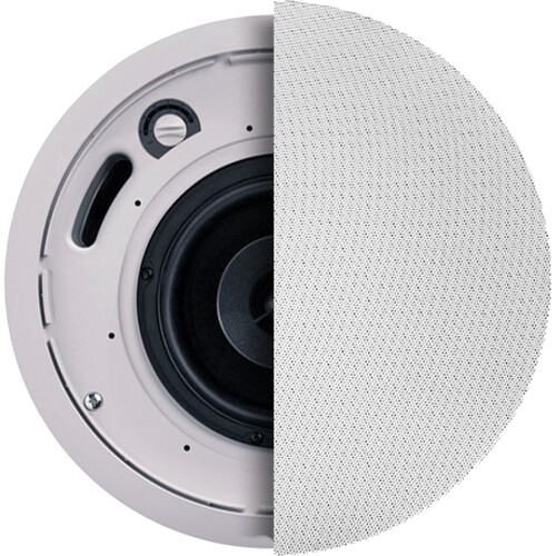 One 6.5 inch (165 mm) polypropylene woofer with rubber surround and one 1.0 inch (25.4 mm) silk dome tweeter. BroadBeam Ring technology for mid-range clarity and smooth off axis performance. Easy-access six-position tap switch for 25/70.7/100-volt and transformer bypass settings allows for easy ordering, stocking and installation. Tuned port on baffle for added musicality and bass response down to 64 Hz (-10 dB). Reduced amplification costs and maximum efficiency of 85.0 dB sensitivity, 16 ohm impedance. Incorporates a painted steel magnetic seamless grille for lasting durability and refined aesthetics. Adaptable to material thicknesses ranging from 0.035 inch (0.9 mm) to 1.6 inch (40.6 mm). UL 1480, UL 2043 and EN54-24 listed. IP-Rating: IPX3.
