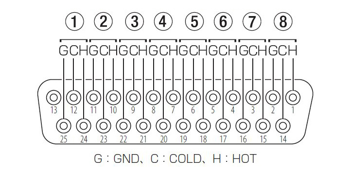 Two rear-panel 25-pin D-Sub inputs using TASCAM standard pin assignments