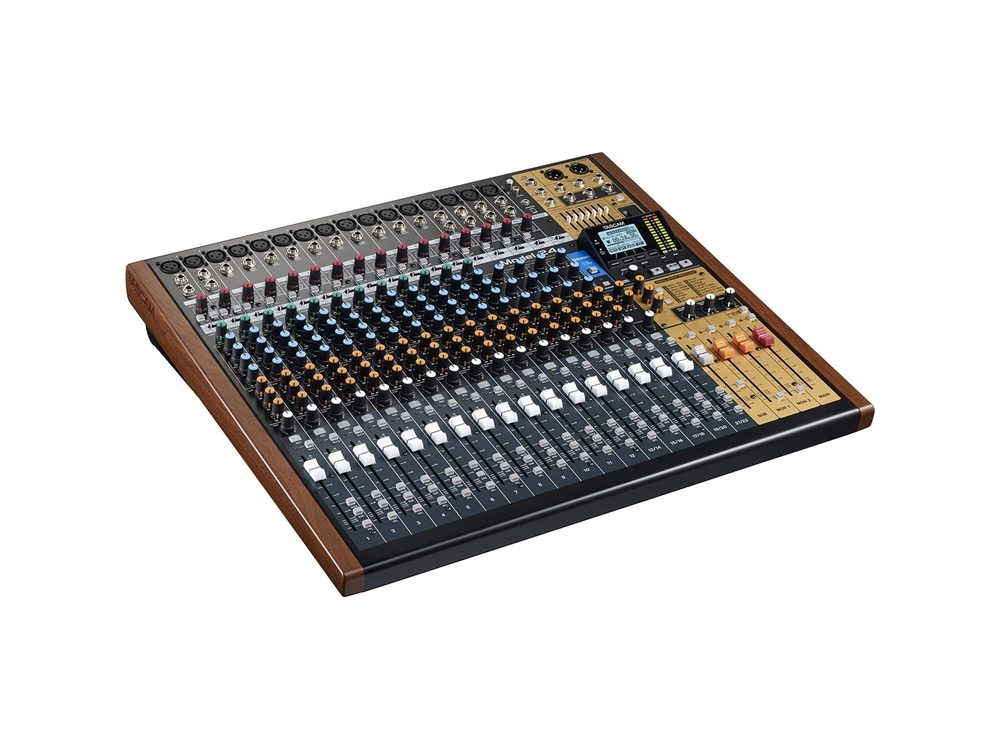 The highly flexible Tascam Model 24 is a powerful, versatile, hybrid mixer/recorder/audio interface for both live and recording applications, well suited for bands, studios, conferences, podcasts, houses of worship, and more. The full-featured professional mixer offers 22 input channels including 16 microphone preamps with phantom power, two 1/4″ Hi-Z jacks, 12 balanced 1/4″ mono line inputs, and four balanced 1/4″ stereo line inputs. Additionally, the last stereo input also accepts signals from a variety of sources including Bluetooth, USB, RCA, or a 3.5mm stereo mini jack.