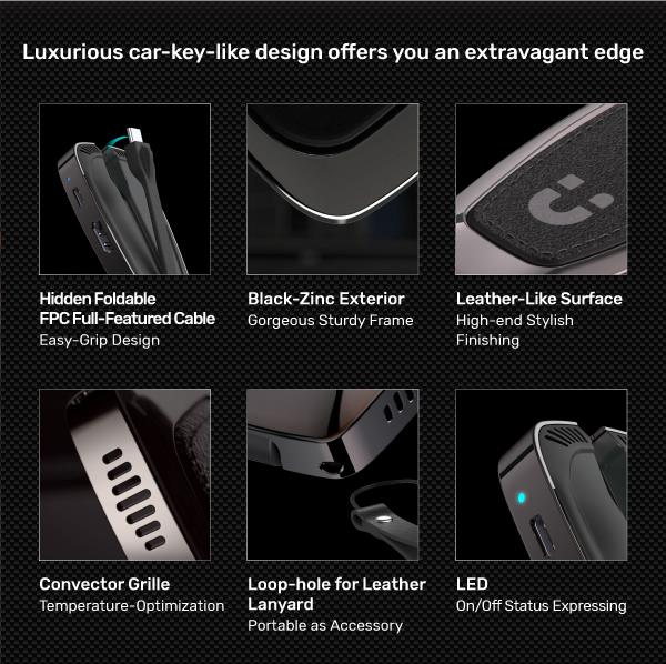 Designed with a luxurious car-key-like appearance and built with black zinc alloy, this multifunctional