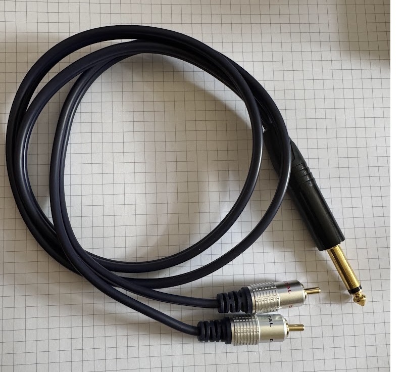 Y Cable 1/4 in TS to Dual RCA Lead 2m