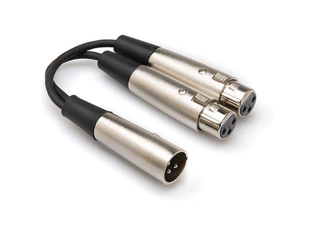 The YXF-101.5 from Hosa Technology is an audio Y-cable that is ideal for connecting 2 microphones to a single input on a mixer or recorder. The cable is 18″ long and is made of oxygen-free copper for enhanced signal clarity. An OFC spiral shield provides flexibility, as well as effective EMI and RFI rejection. The cable has an XLR male connector at one end and a pair of XLR female connectors at the other. The connectors have internal strain relief for lasting durability.
